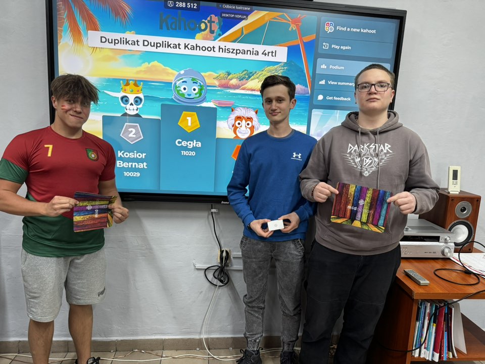 Projekt Akredytacji Erasmus+ Dzień Hiszpański w Tołstoju za nami. Gratulujemy zwycięzcom konkursu wiedzy w Hiszpanii. Pierwsze miejsce zajął Mateusz Cugowski, drugie Kuba Bernat, a trzecie Wojtek Skrodzki. W grze terenowej na temat Hiszpanii najlepsi byli uczniowie z 2EM, 2 m-ce 1BC, a 3 – 2LR i 2NS. Gratulujemy i dziękujemy za wspólną zabawę. Przypominamy, że z projektu Erasmus+ już w najbliższą niedzielę do Kordoby wyjedzie kolejna 10-osobowa grupa naszych stażystów. Szczegóły wkrótce.