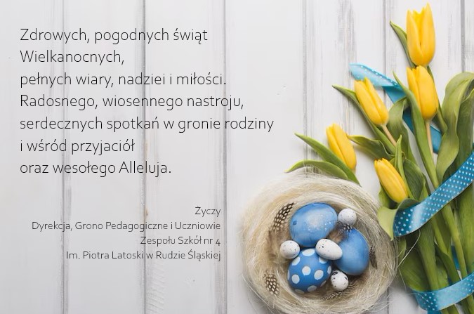 Radosnego, wiosennego nastroju, serdecznych spotkań w gronie rodziny i wśród przyjaciół oraz wesołego „Alleluja” wszystkim uczniom, nauczycielom oraz pracownikom szkoły życzy